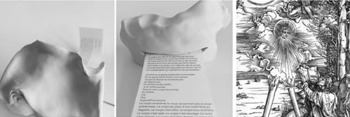 Depuis, notre duo artistique récemment constitué s’inscrit dans une démarche de créations textuelles, corporelles et plastiques ; volontairement sans contours nets, sans axe de travail fixé par avance ; il se laisse porter par les questions qui émergent du monde et nous habitent.