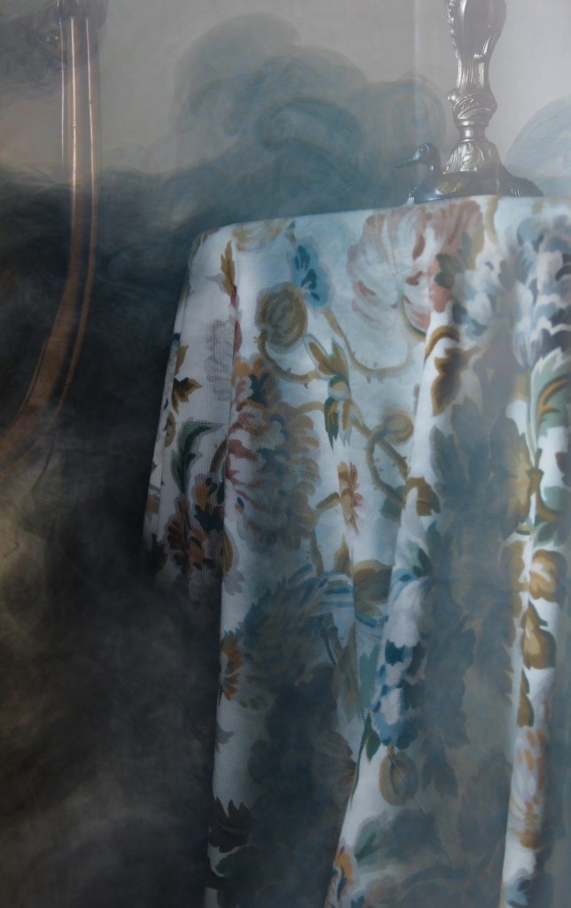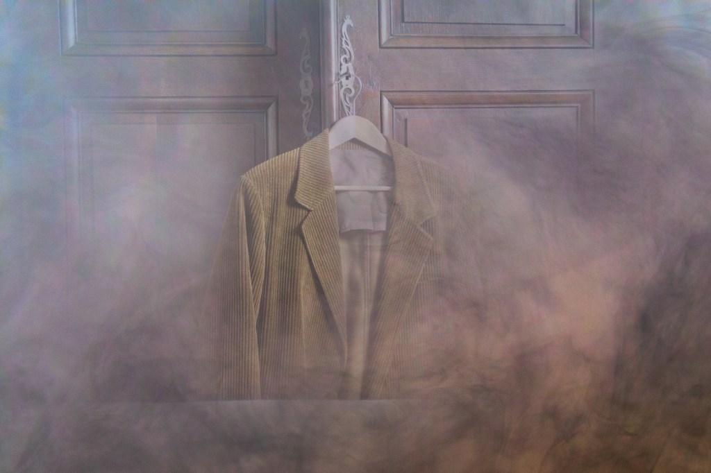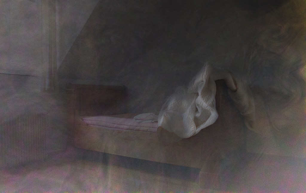 Athanemos est constituée de photographies de la maison de ma grand-mère récemment partie vivre en EPAD, de celle de mes parents où j’ai vécu depuis l’enfance et la juxtaposition de photographies de fumée de cigarette électronique matérialisant l’air qui nous entoure.