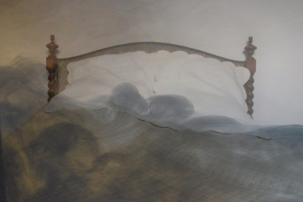 Je suis partie d’un geste banal, celui de fumer, mais qui retient en image l’angoisse de l’absence. La fumée dense matérialise l’air inspiré et expiré. Ces photographies rendent palpable l’attente, l’errance dans ces maisons pleines de souvenirs. Les volutes s’immiscent dans les recoins de ma mémoire et finissent par se perdre. J’ai passé quelques jours seule dans ces deux maisons, en essayant de retrouver des sensations d’enfance et d’adolescence. L’air qui nous entoure contiendrait-il nos souvenirs ?