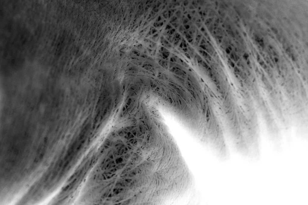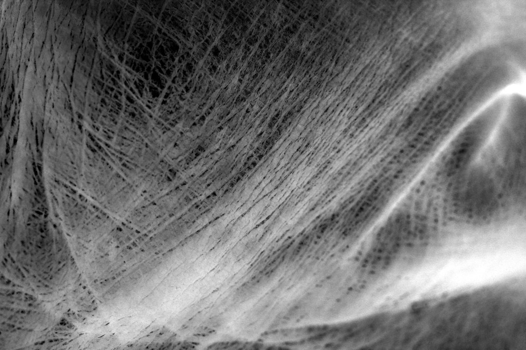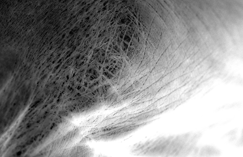 La photographie argentique fixe les détails, du tracé des veines aux empreintes digitales. L’artiste fait sienne une philosophie du sensible ; c’est par le toucher que l’on peut appréhender la chose. Le détail nous permet d’entrer dans la matière. Le noir et blanc nous permet de plonger dans les lignes de la main et de remonter les sillons du temps. Le regard se concentre sur le grain de l’image, il y a dans la façon de montrer quelque chose de précieux, comme si nous avions devant nous des pièces à convictions. La peau est ce qu’il y a de plus profond affirmait Valéry[1] : elle est mémoire et miroir de l’intérieur.