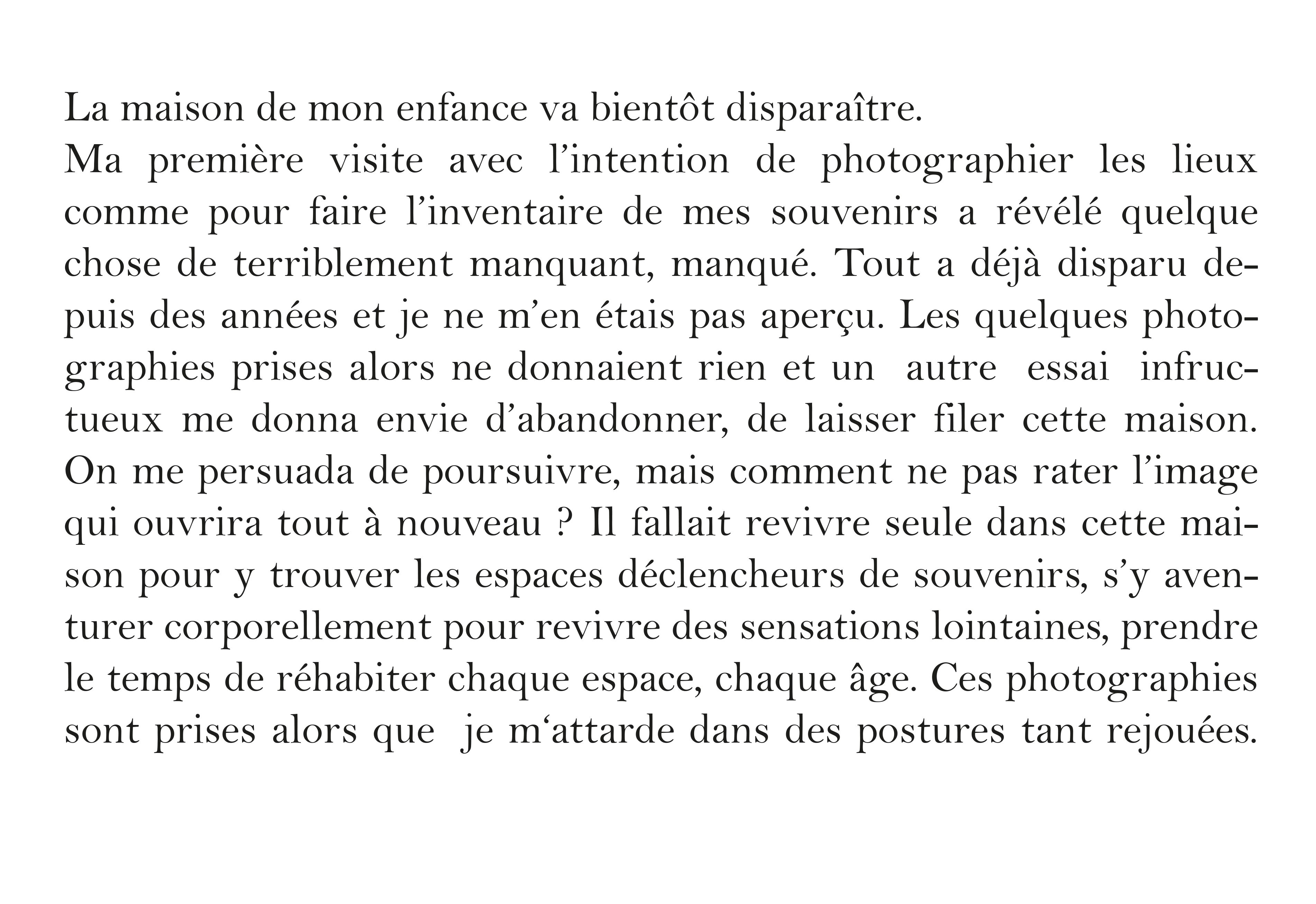 Il ne reste à l’observateur que l’image et des couples de mots pour ressentir cette expérience dont il n’est pas le témoin direct. Des mots que chacun des protagonistes, l’artiste et le modèle, ont choisi sans se concerter. Ont-ils perçu de la même façon le moment ? Le souvenir est trompeur. C’est le langage avec ses contradictions qui plus que les détails des photos permet de dire, écrire et vivre. Grammaire de l’échange, vocabulaire de la peau, les registres de Fanny Pentel sont librement accessibles ; l’intimité se vit en partage.